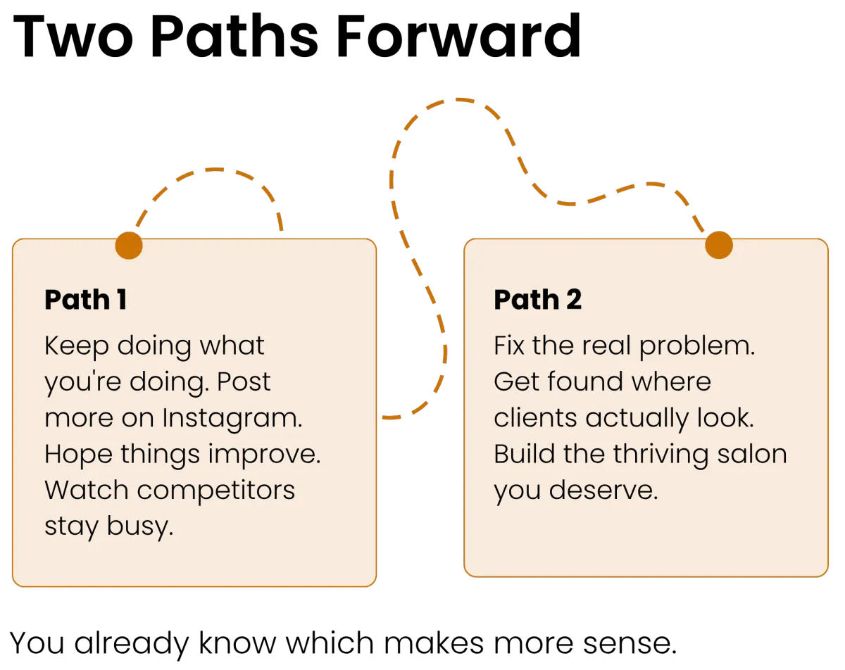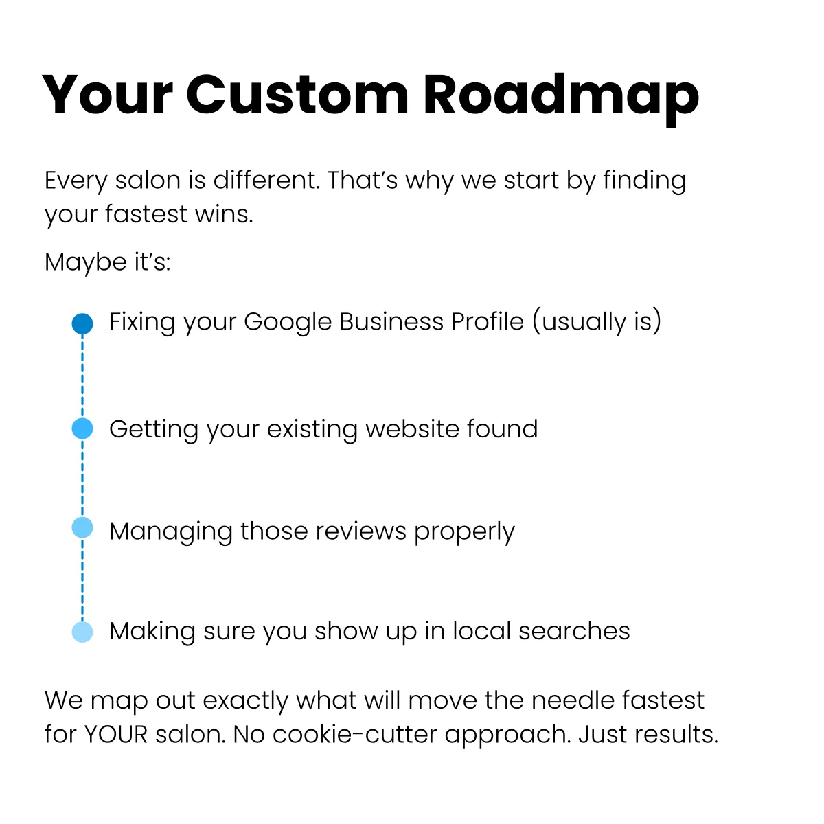"Spent years thinking social media was the answer. Turns out I was invisible on Google. Two months after fixing that, I had to hire another stylist.'