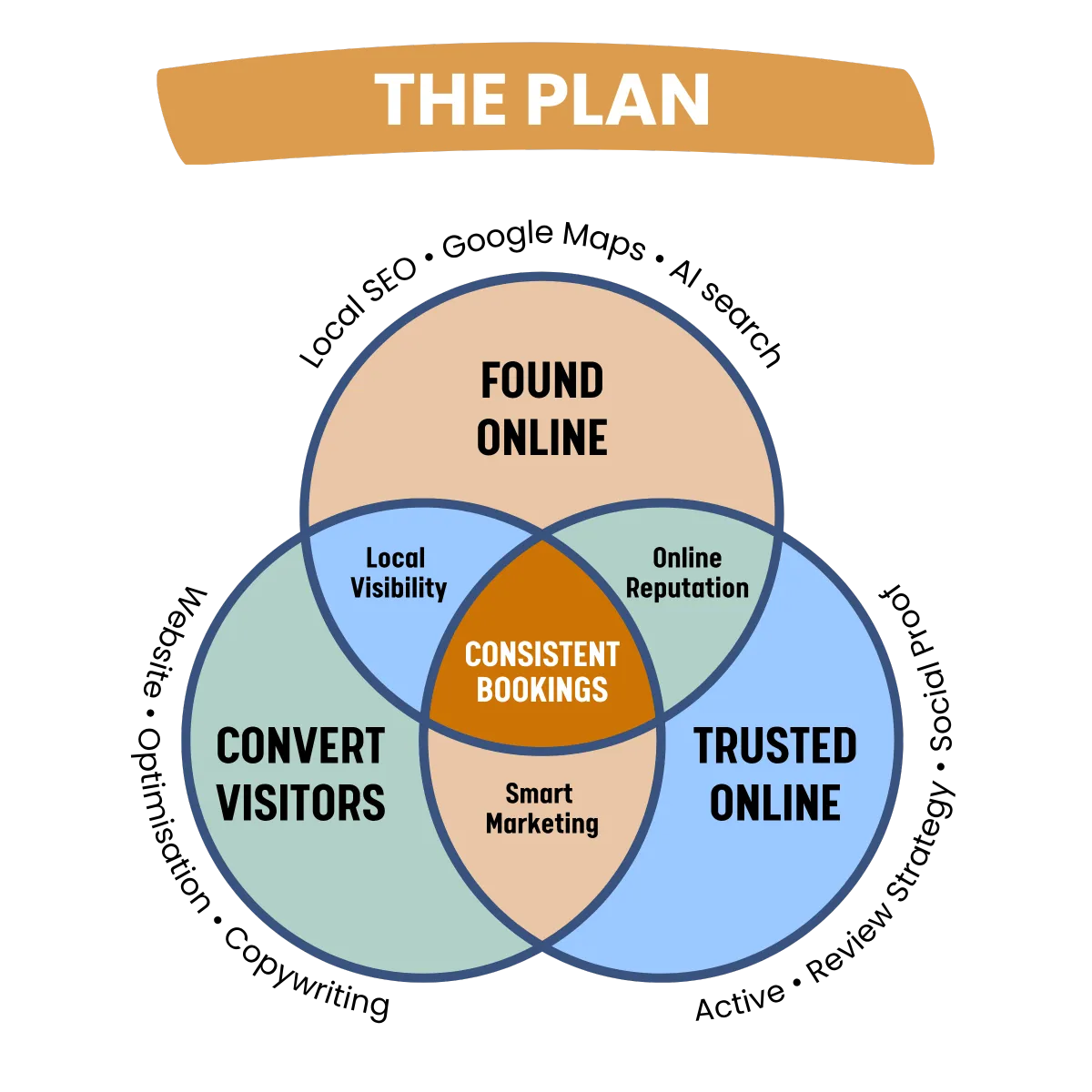 Found Online meets Convert Visitors meets Trusted Online = Consistent Bookings